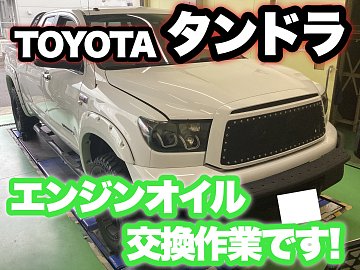 みなさん、こんにちは('ω')ノ 本日はTOYOTA タンドラの エンジンオイル交換作業です!!! TOYOTAのアメリカ等で販売されている いわゆる逆輸入車です('ω')ノ 車両もさることながら排気量も5.7Lと アメリカンサイズですね(^_^;) いや~、わたくしも憧れのお車です。 さて早速作業開始! まずは古い...