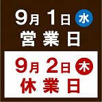 いつも当店をご利用いただき、誠にありがとうございます。 当店は毎週水曜を定休といたしておりますが、 本日、2日(木)も休業日となります。 9月の休業日に関しましては、 お知らせページでもご案内しております。 ご迷惑をおかけいたしますが、 何卒ご理解賜りますようお願い申し上げます。