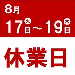 いつも当店をご利用いただきまして、誠にありがとうございます。 当店は毎週水曜日を定休とさせていただいておりますが、 今週は 8月17日(火)~19日(木)も休業日となります。 ご不便をおかけいたしますが、何卒ご理解賜りますようお願い申し上げます。 8月20日(金) 10:30から通常営業いたします...