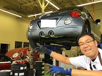 皆様こんにちは(*´▽`*) 昨日サービス事例にて「ダイハツ コペン」のマフラー交換をしたのですが、その裏側を撮影した写真があるのでご紹介いたします!! マフラー装着後に写真を撮影しようとした際に、青柳スタッフが邪魔をしたシーンです↓ これからも多分、写真を撮ろうとすると青柳スタッフの邪...