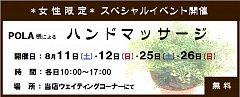 今週末は、大好評企画を再び開催! つくばイオンモール2Fにあります、POLA化粧品様による ْ✧ं॰* ハ ン ド ト リ ー ト メ ン ト サ ー ビ ス ْ✧ं॰* を受けられます! 女性のお客様限定のサービスです。 既に体験いただいたお客様からは、 「気持ちよかった♪」 「すべすべになった♥」と 嬉しいお声...