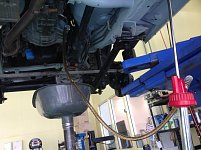 本日はジムニーのミッションオイル交換をしました 抜き終わって新油を注入中です フィラーがミッションの横にいるため専用工具を使って注入していきます 矢印部分がオイルを排出するドレン、○印が新油を入れるところです ジムニーだと1.3ℓくらいですかね