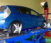 トヨタ アクア(NHP10型)のタイヤ交換とホイールアライメント調整を作業させていただきました。 測定したところ、左前がトーイン、右前がトーアウトという状態でした。 ステアリングのセンター位置がズレており、常に少し左に切っていないと直進しないとのことなのでフロントのトーを調整させていた...