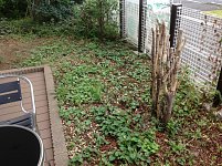 当店の毎年恒例行事!! ウッドデッキの草刈り♪ こんな感じにキレイになりました♪♪ 作業待ちの間は……ここで一服を(-.-)y-., o O