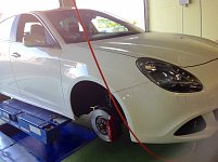 アルファロメオ ジュリエッタのフロントタイヤ交換とホイールアライメント調整を作業させていただきました フロントはトー、リヤはトーとキャンバーが調整可能です アルファロメオの作業依頼お待ちしております٩( 'ω' )و