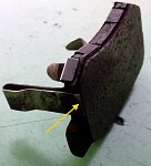 こちらはギリギリまで使用したブレーキパッドです ブレーキパッドの使用限界は1mmでして、残りが2mmになるとブレーキを踏んだ時にキーキー音が鳴り出します なぜかというと画像の矢印の部分がディスクローターに当たるためキーキー鳴ります これはパッドウエアインジケーターといって、ブレーキパッ...