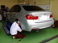 BMW 3シリーズの車高調整とアライメント調整を行いました 内田主任が車高を調整しています サスペンションはビルシュタインでした 最後にホイールアライメントを適正値に調整して作業完了となります タイヤとフェンダーの隙間が無くなって一段とカッコよくなりましたね 当店は外国車の足廻りも得意...