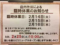 実は、当店リニューアルオープンをすることになりました(o^^o) それに伴い、2月14〜16日まで臨時休業する事に なりますので、ご報告致します(`_´)ゞ 17日からは通常営業し、25〜26日にオープンセールが始まりますので、皆様のご来店お待ちしております♫ ご迷惑お掛けすると思いますが、 今後ともよ...