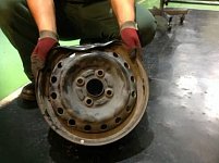 どうもつくば店の柴田です☆ 本日はN様のミラカスタムのご紹介です。 先日後走行中に左前をぶつけてしまったの事でご来店です 当店スタッフが確認した所 ホイールに大きな曲がりがあり ホイールも今回交換させていただきました☆ 今回は純正部品のホイールとタイヤ交換+車軸調整アライメントも実施さ...