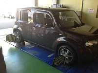 本日は日産キューブにアライメント調整の実施です!! この度タイヤ交換もご一緒でしたのでせっかくの新品タイヤを長持ちさせるご提案 アライメントの実施です! 今回測定したらやはりズレが見受けられますね!! 今回の調整箇所はフロント2ヶ所の調整です! 今回もきっちり調整させていただきました☆