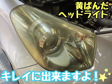 【ヘッドライトコーティング】黄ばんだヘッドライト キレイに復活! 車検対策にも!