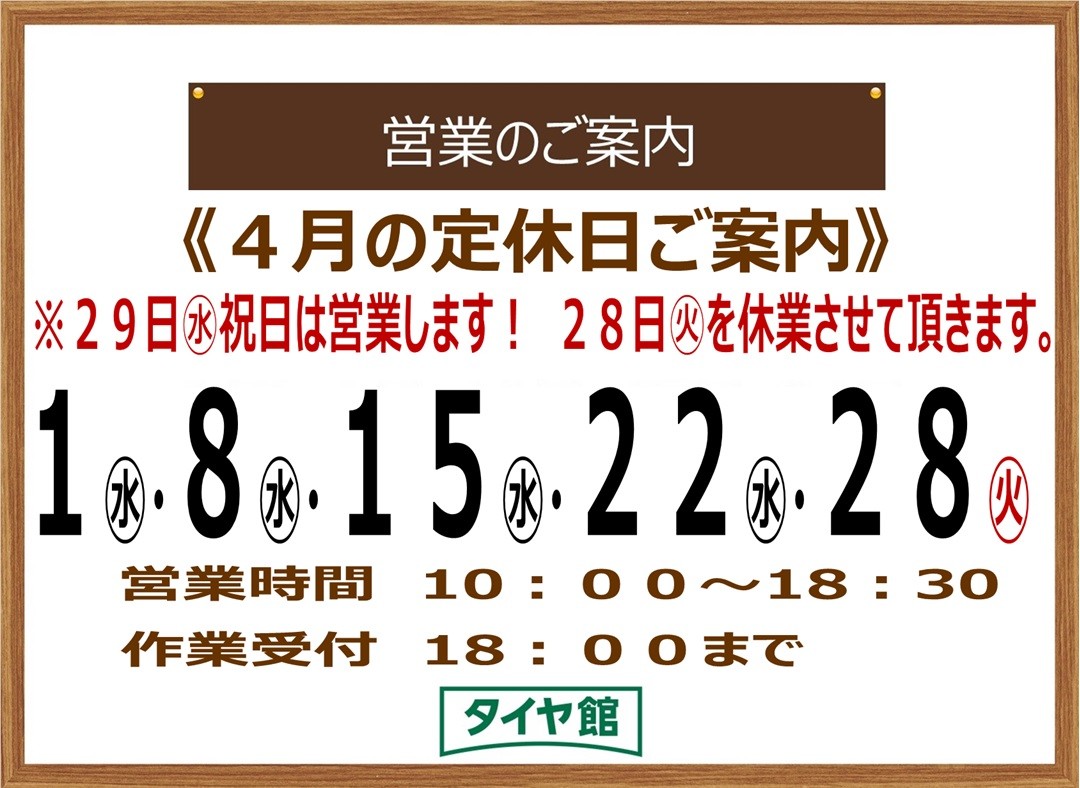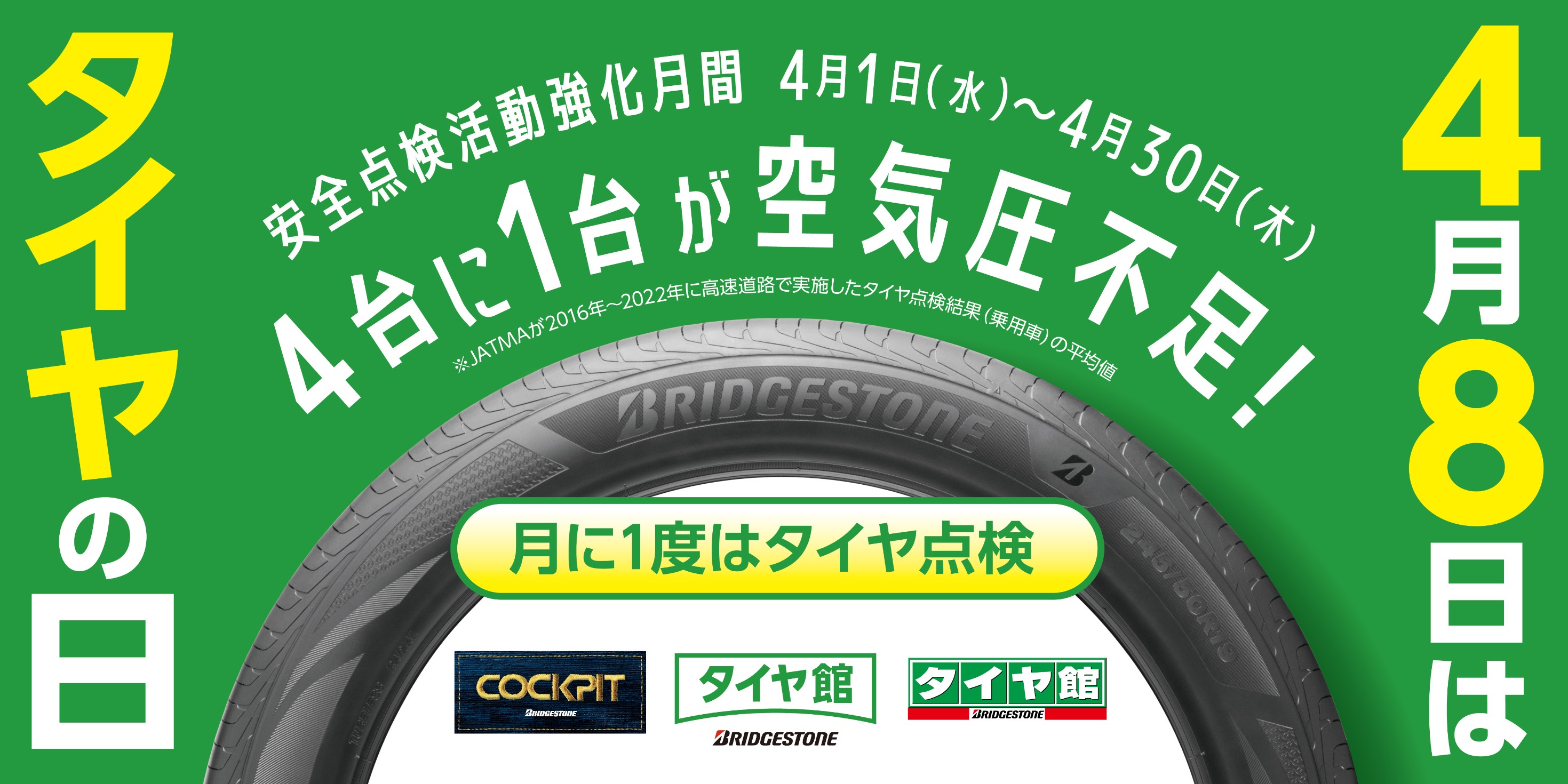 4/8は「タイヤの日」!コクピット・タイヤ館でタイヤ点検しませんか?