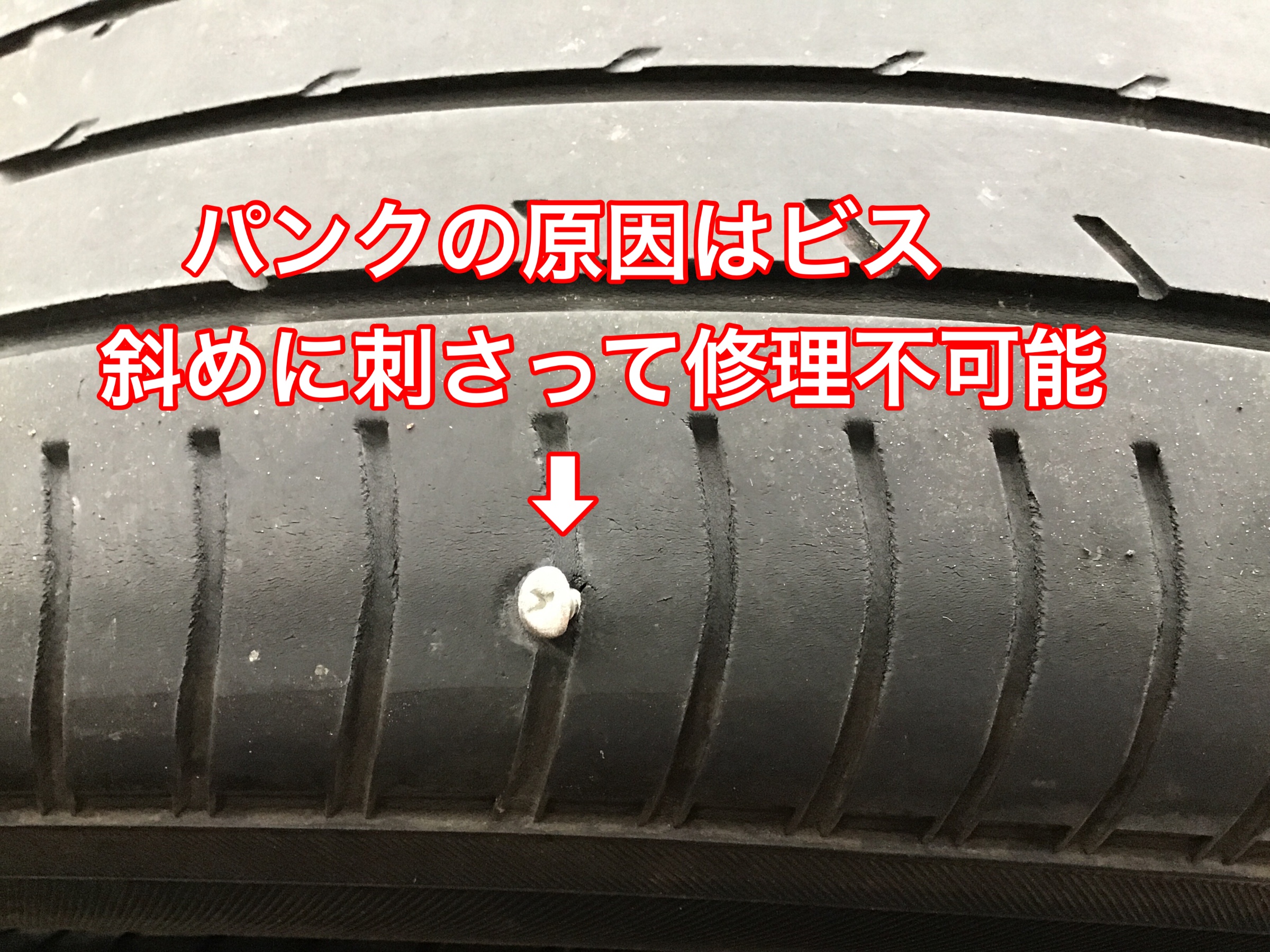 結果はタイヤパンク修理では