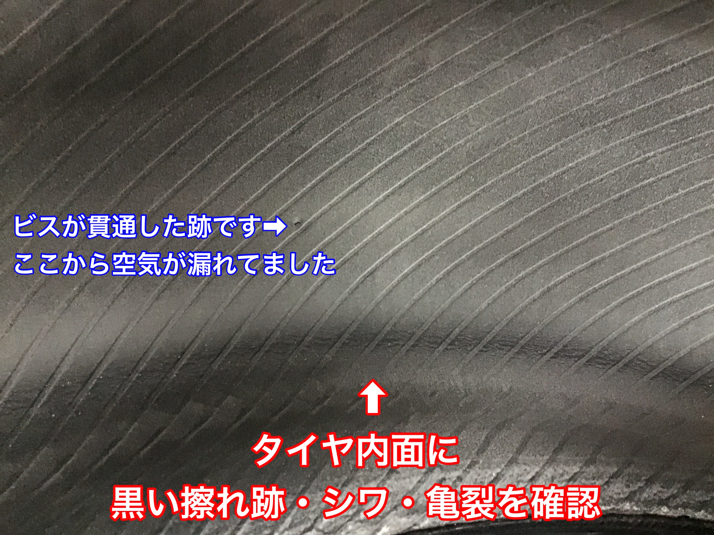 パンクしたタイヤの状態です。