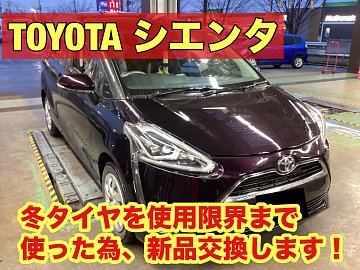 冬タイヤの残り溝が使用限界です。TOYOTA 【シエンタ】新品タイヤ交換で冬道の安心ドライブ!