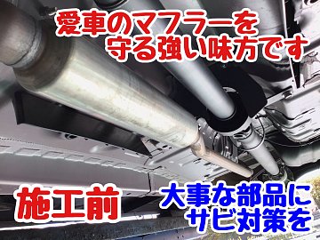 当店のホームページを観に来ていただき ありがとうございます! これから季節が進んでいくと 雪が降り融雪剤がまかれる季節となります。 そうなると下周りのさびが気になります((+_+)) 全体施工がベストですが、 特に錆びるマフラーの部分施工も可能です!! 錆びてしまったものは元には戻せませんが ...