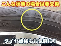 みなさんこんにちは 暑かった季節が過ぎて日中も涼しく感じる日も 多くなり、そろそろ冬タイヤの準備を 考えている方も多いかと思います。 冬タイヤの残り溝やゴムの硬さなども 大事ですが、もう一つタイヤの損傷なども 大事な点検項目になります。 タイヤの側面が縁石にぶつかるなどで損傷している...