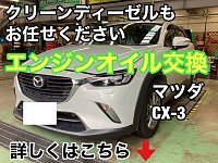 クリーンディーゼル車もご相談ください! マツダ CX-3 エンジンオイル交換