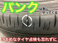 こまめなタイヤ点検忘れずに。パンクチェックや1本交換もやってます。