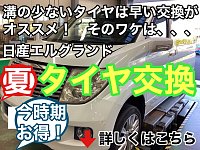 溝の少ないタイヤに潜む危険、エルグランド夏用タイヤ交換