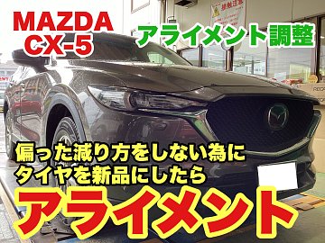 皆様こんにちは♪ 今回は以前タイヤ交換を行った 【MAZDA CX-5】で アライメント作業を実施した様子を ご紹介します(*´∀`)♪ まずアライメントって何!? という方が多いと思いますが、 アライメントとは車に対して タイヤ・ホイールが取り付けられる 角度や位置関係の総称を表しています。 タイヤ...