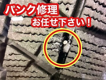 当店のホームページを観にきていただき ありがとうございます! ご自宅でタイヤ交換される方も 多くいらっしゃるかと思います。 そこで 夏タイヤから冬タイヤへ交換の際に タイヤの空気が抜けておりパンクの疑いが… タイヤを点検したところ 釘のようなものが刺さっていて そこからエア漏れパンクで...