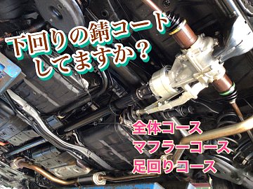 みなさん、こんにちは! いつも当店のホームページを ご覧頂きまして、ありがとうございます! 愛車のボディを綺麗にする為に 洗車したり、コーティングしたりと ケアされますが、お車の下回りは ちゃんとケアされていますか? 「カーディーラーでコーティング みたいなのしたなぁ」 「たしか新車で...
