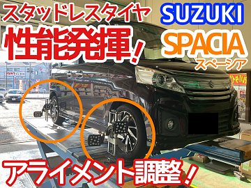 【SUZUKI スペーシアカスタム】アライメント作業 雪が降る前に愛車のメンテナンスしませんか!?