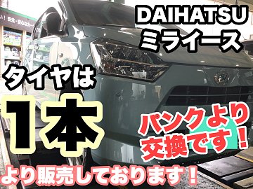 ダイハツ【ミライース】パンクでタイヤ交換。タイヤは1本から交換できます!