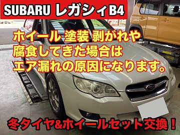 SUBARU【レガシィB4】冬タイヤ・アルミホイールセット装着のご紹介!(アルミホイール塗装剝がれ浮き・腐食発生)