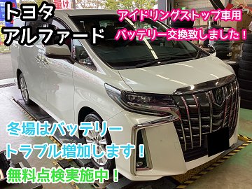 バッテリートラブルが急増する冬!お使いのバッテリーは大丈夫ですか?無料点検実施中!【トヨタ アルファード】バッテリー交換