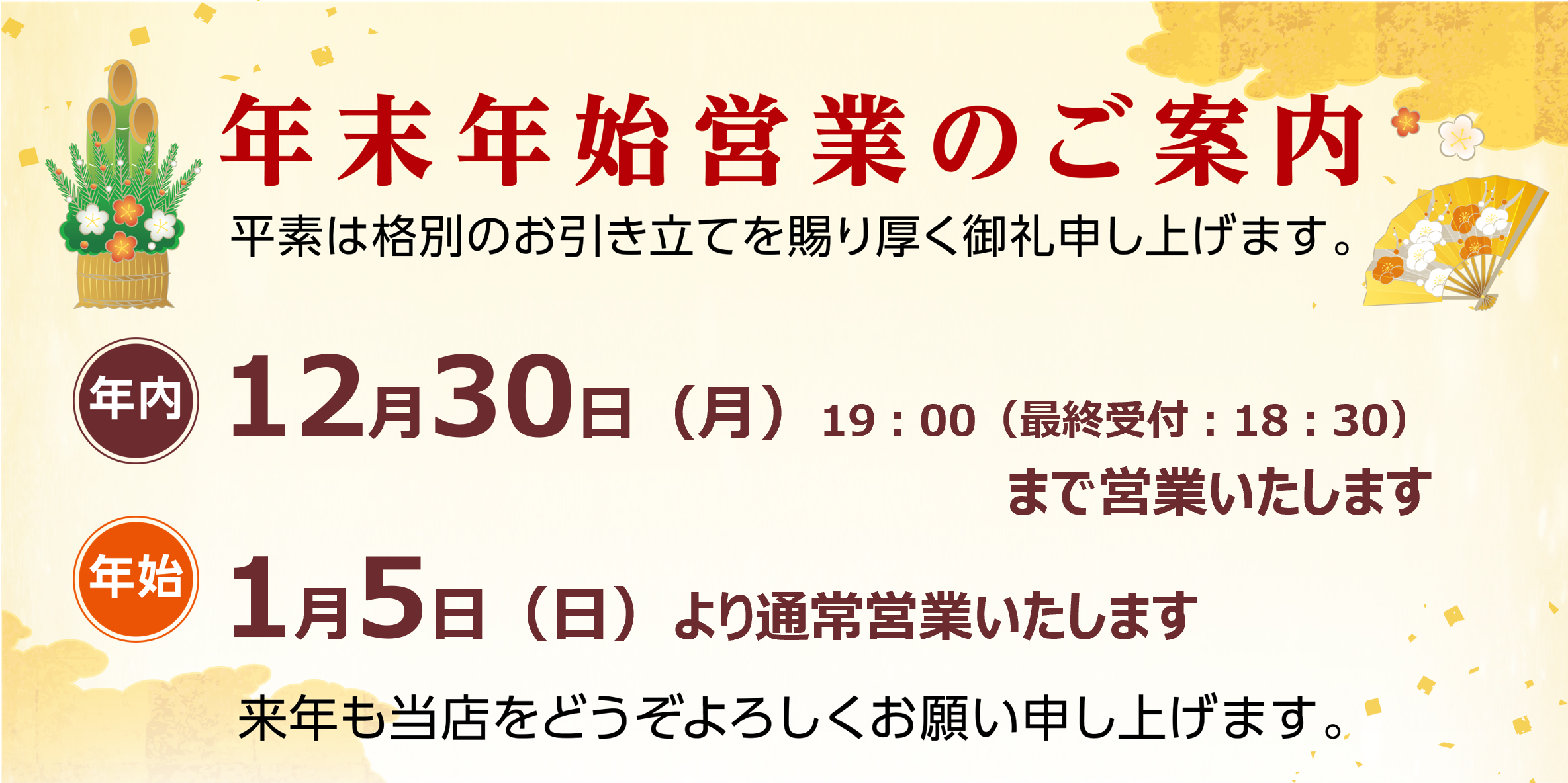年末年始休業のお知らせ 2024年12月30日 本日はタイヤ館八戸のHPをご覧いただき誠にありがとうございます。 年末年始休業のお知らせです。 12/31(火)~1/4(土)までの間 年末年始休業とさせていただきます。 本年最終日営業日は12/30(月) 年始初営業日は1/5(日)とさせていただきます。 ご来店の際はお気をつけてお越しくださいませ。
