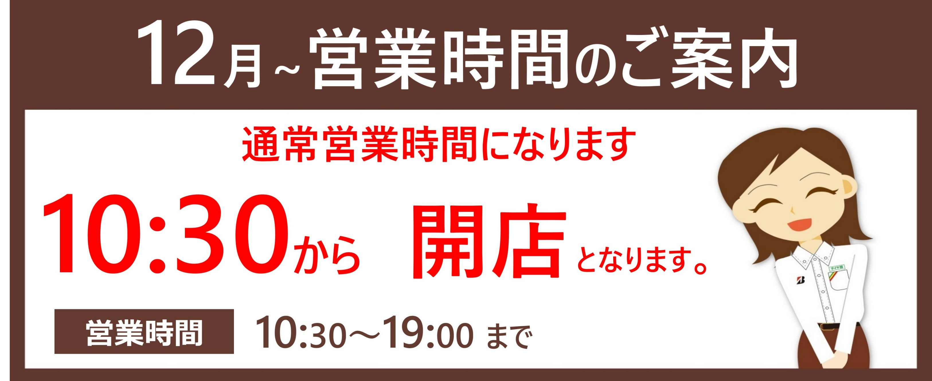 【10:30OPEN】12月~通常営業時間に戻ります。 2025年11月29日 いつもタイヤ館八戸をご利用いただき 誠にありがとうございます(*^-^*) 12月1日より通常営業時間に戻ります。 【 10:30~ 開店です 】 お間違えの無いようお願いいたします。