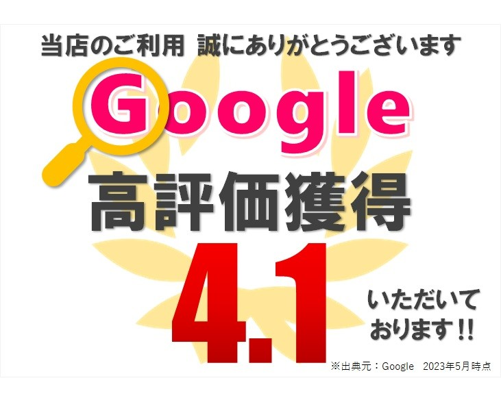 当店はGoogle口コミ評価 『4.1』を頂いております。