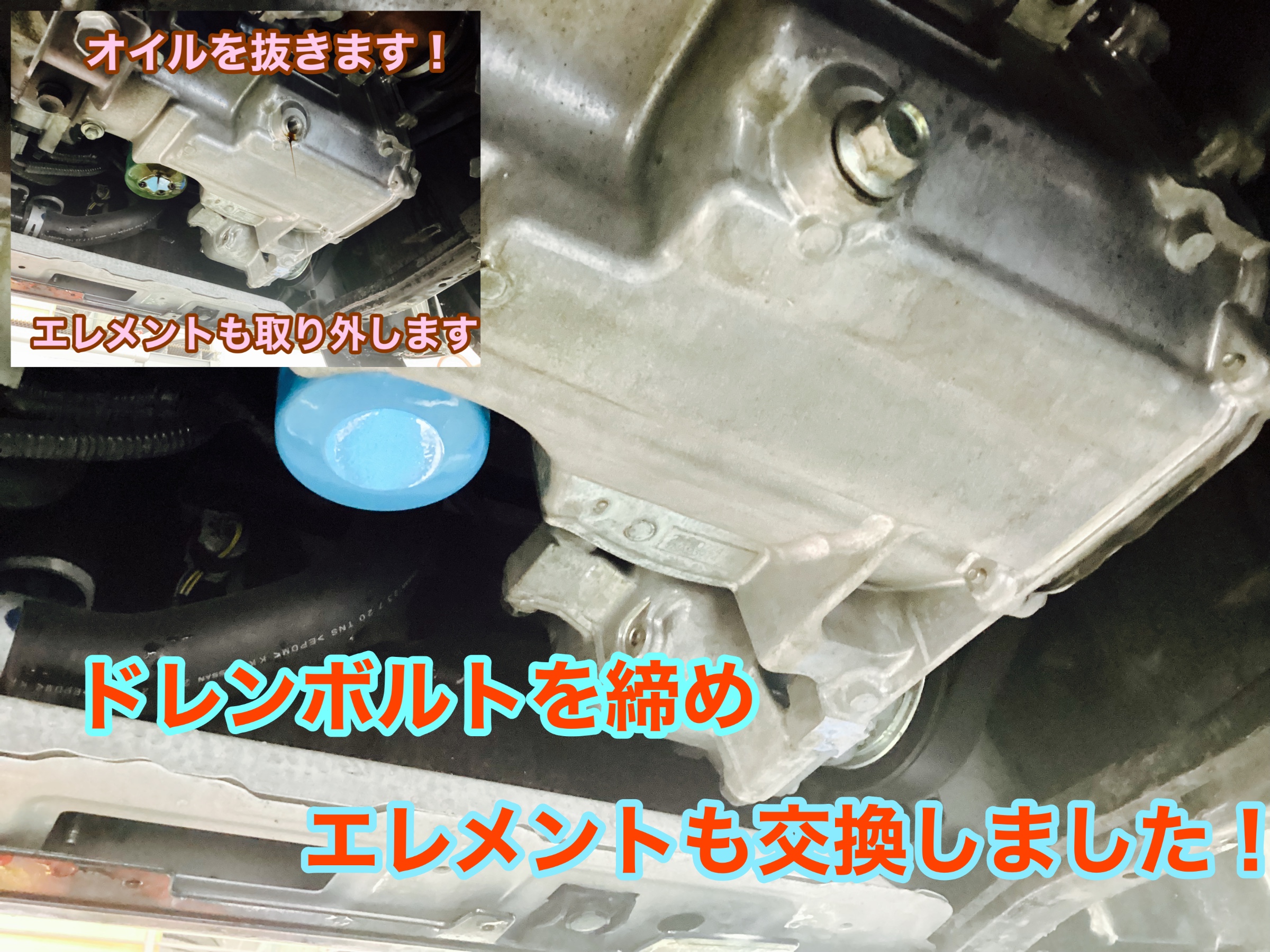写真のようにオイルを抜いたあと、エレメントを交換したあとはどうしてもオイルが垂れてしまうので