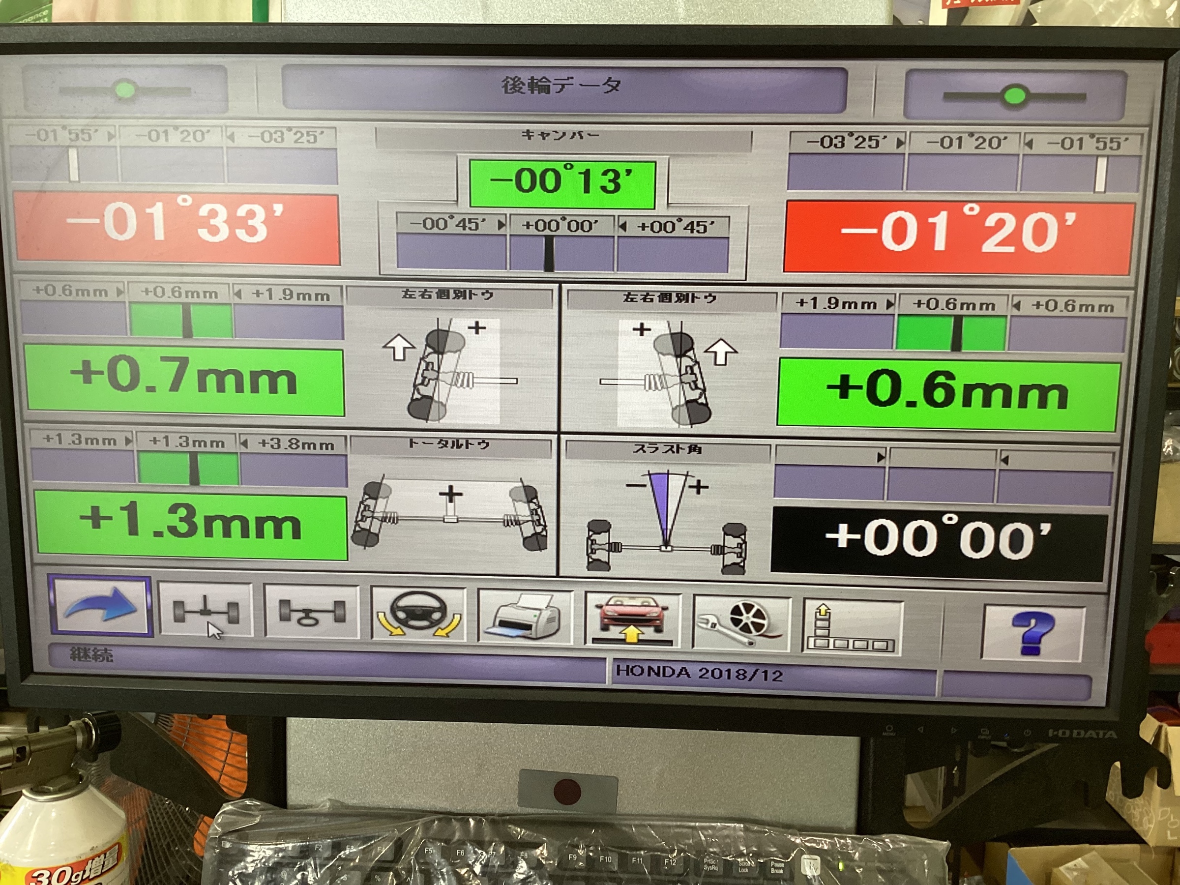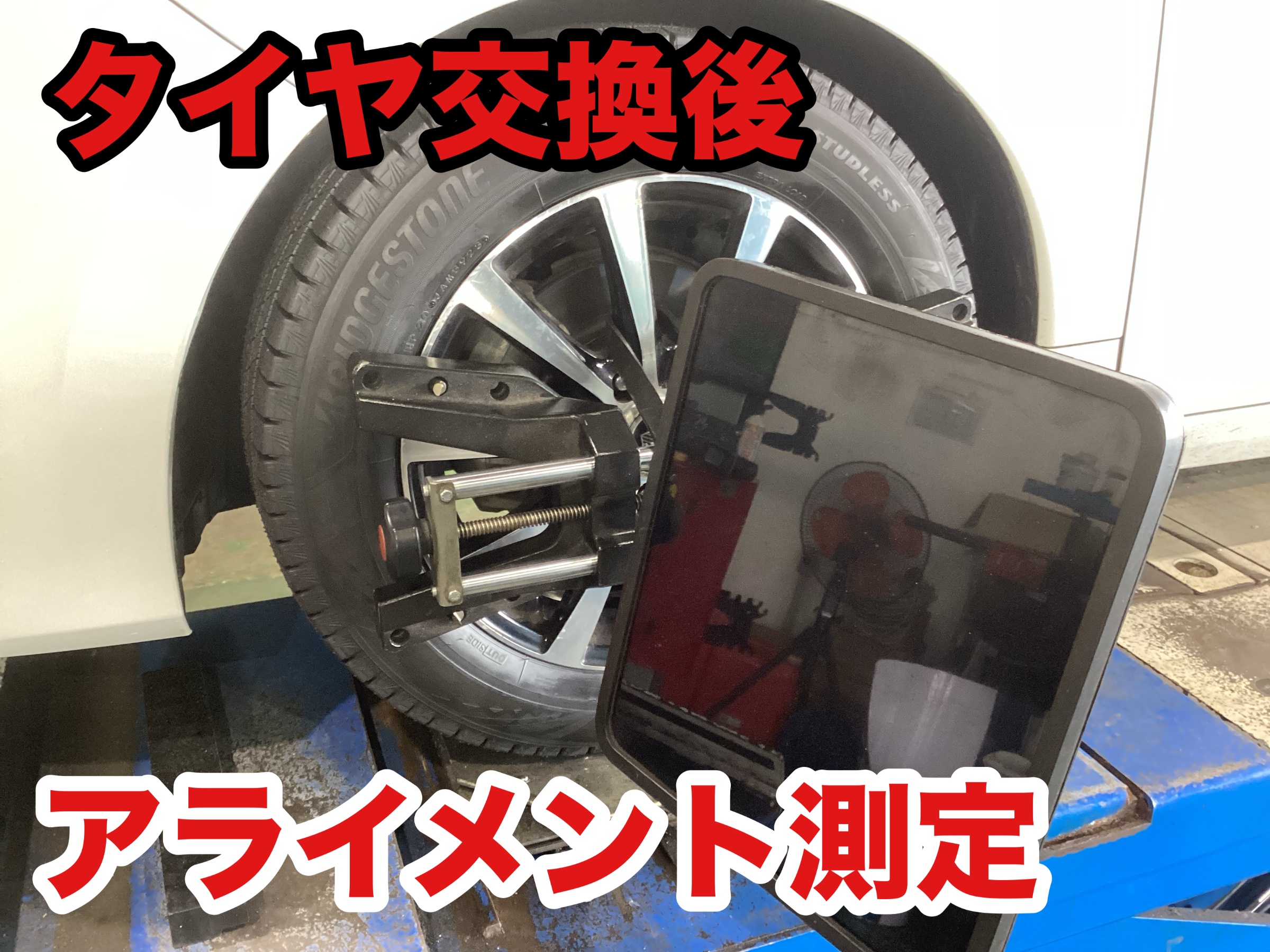 まずは測定してタイヤのズレを正確に数字化していきます。