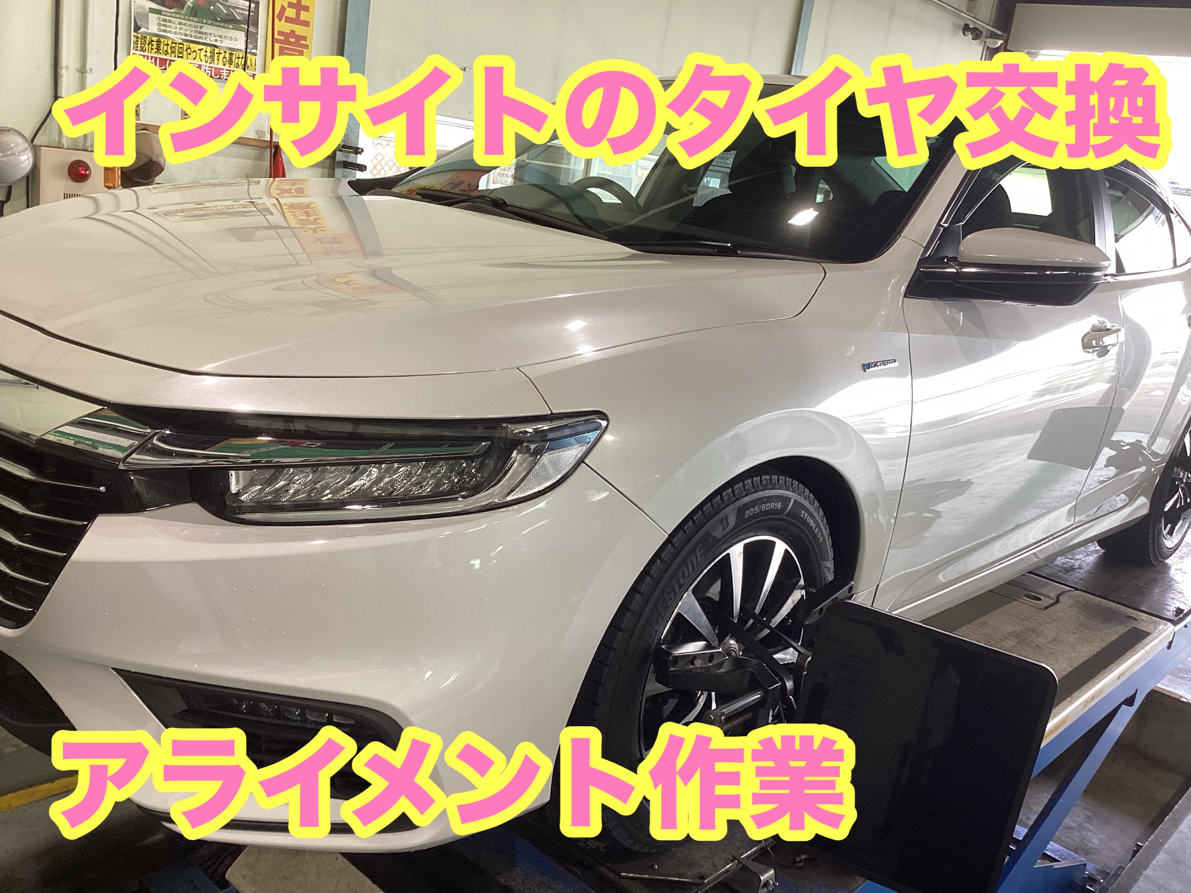 本日はHONDA、インサイトのタイヤ交換、アライメント作業です