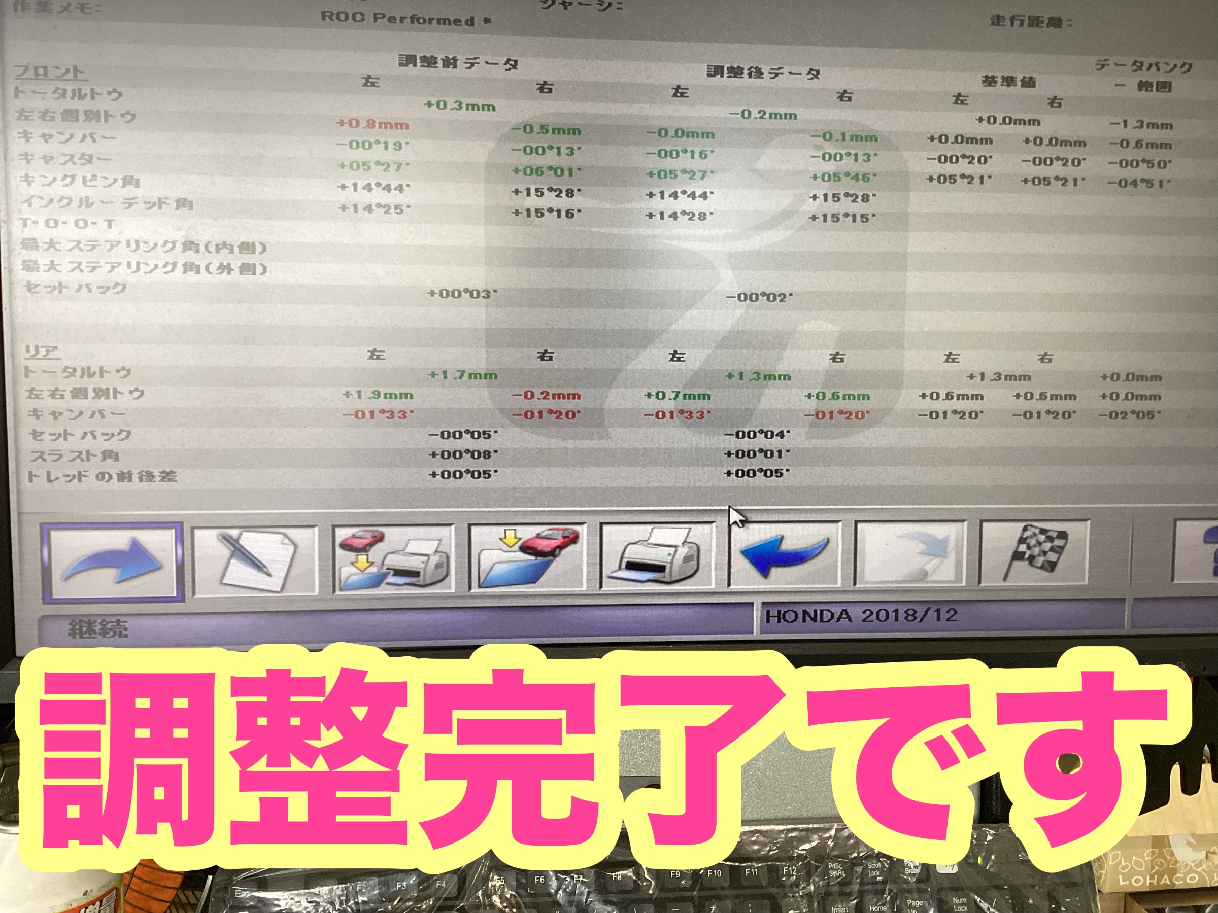 若干の方減りも出ていたので、アライメント調整も同時に作業いたします