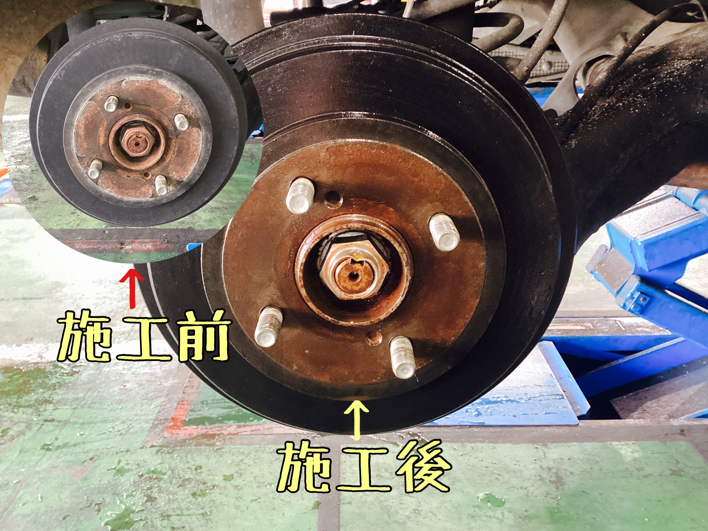 取り付ける面のハブの錆止めもご一緒に行います。