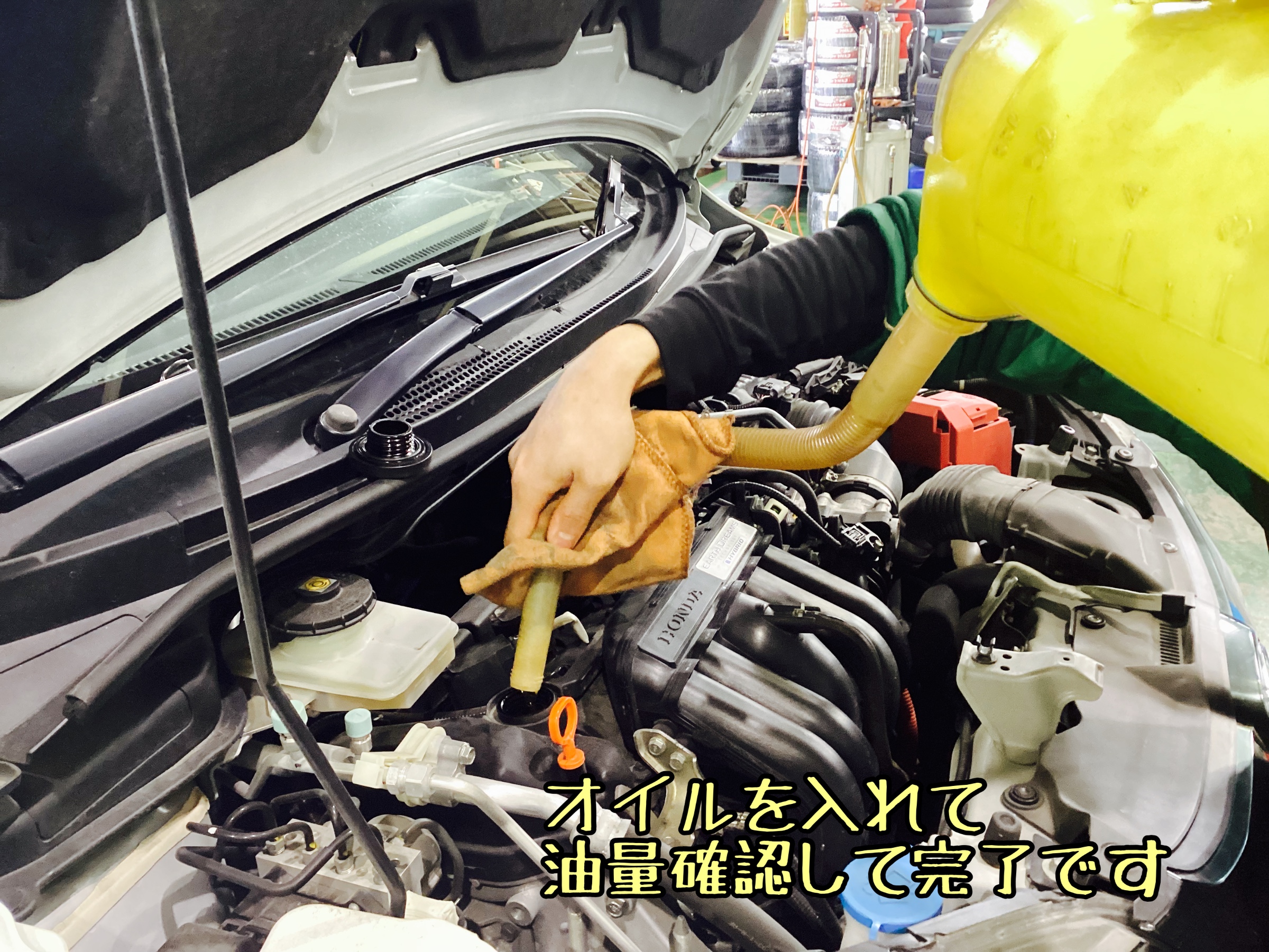 オイルの量を確認し、足りなかったら規定量まで入れます。