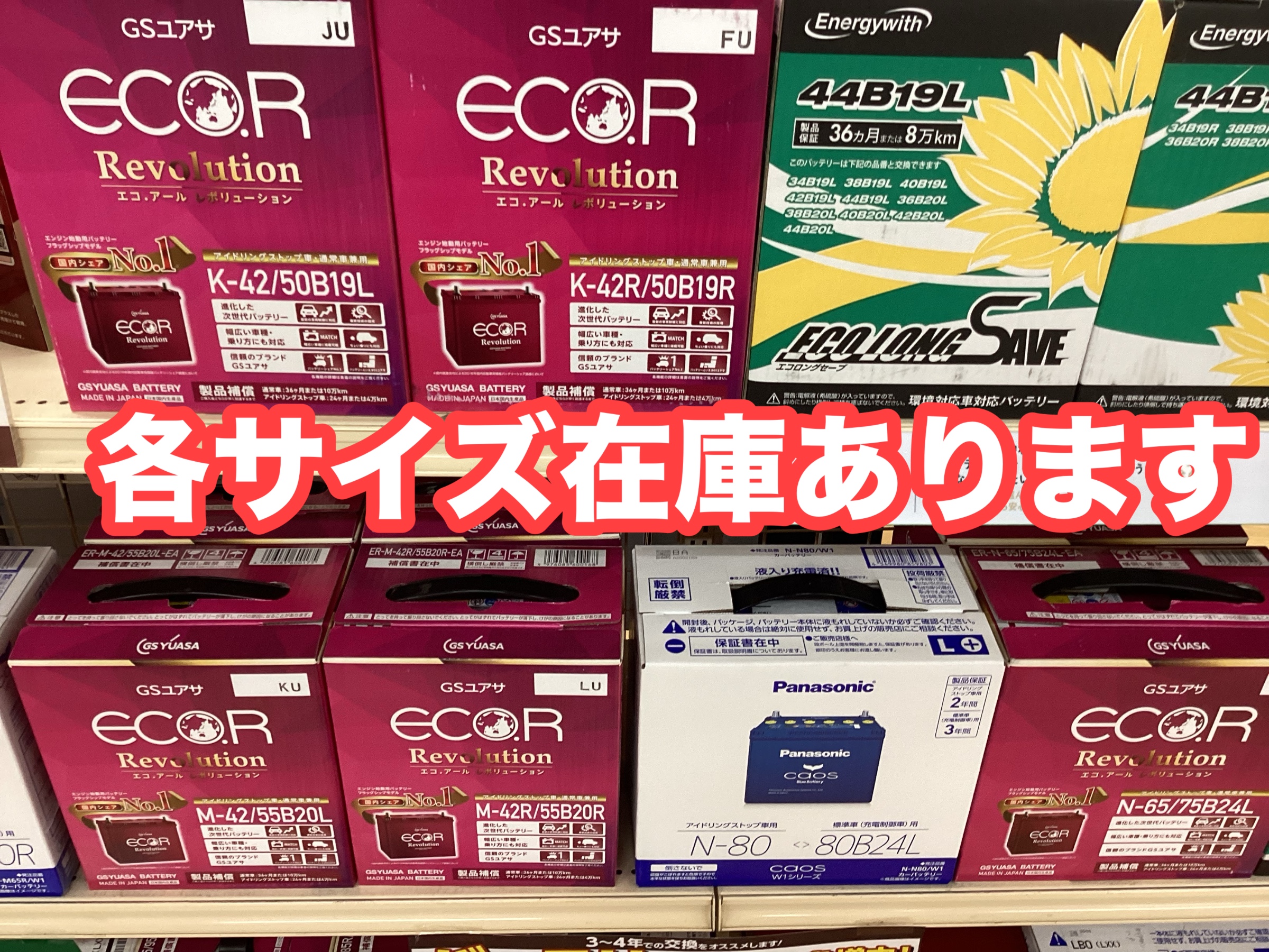 タイヤ館八戸ではバッテリーの各サイズ常時在庫致しておりますので、