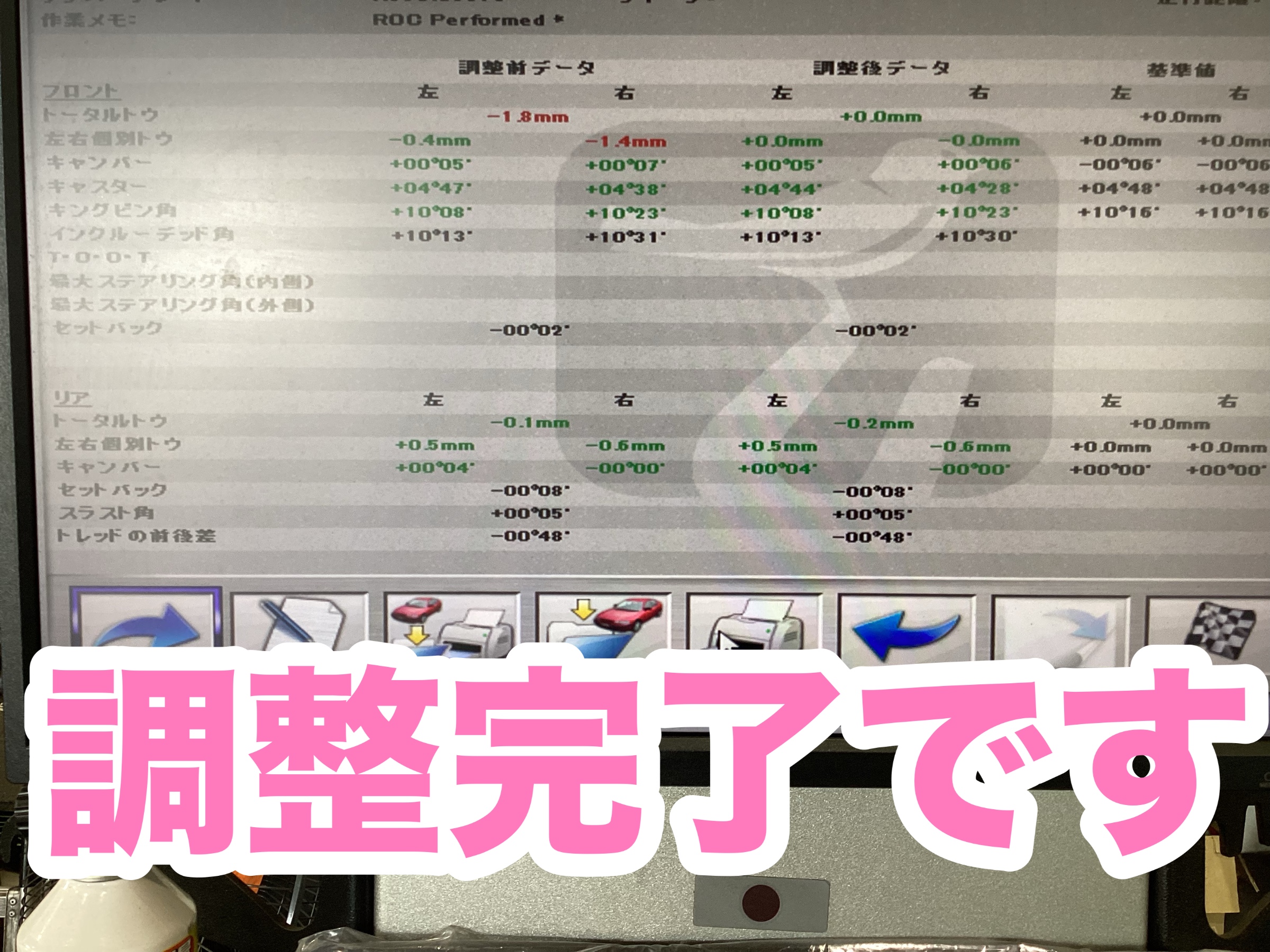 今回は車を修理したので調整したいとの事でした。