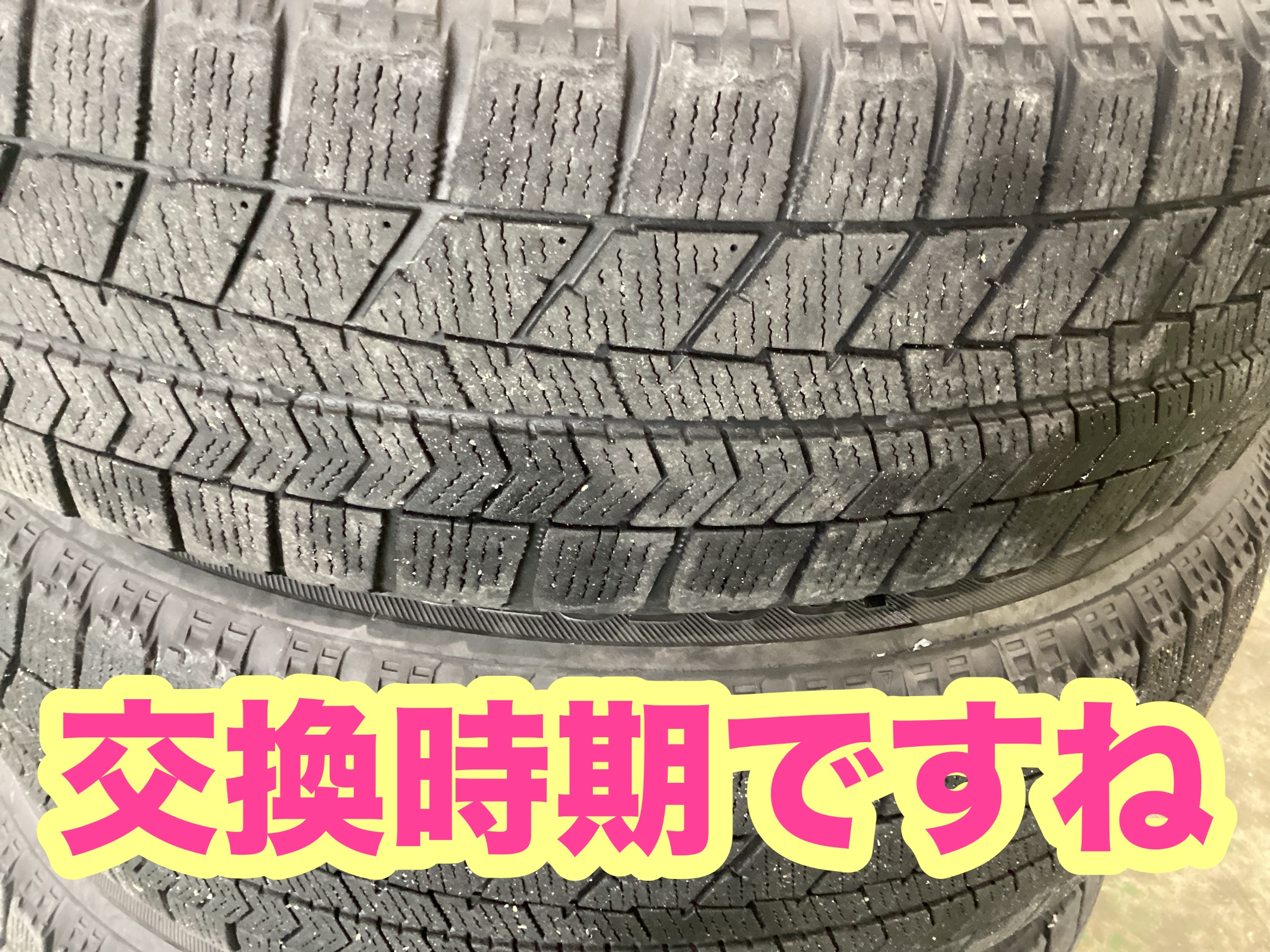 交換検討でしたが、冬タイヤとしての使用限界まで減っていた為交換になりました。