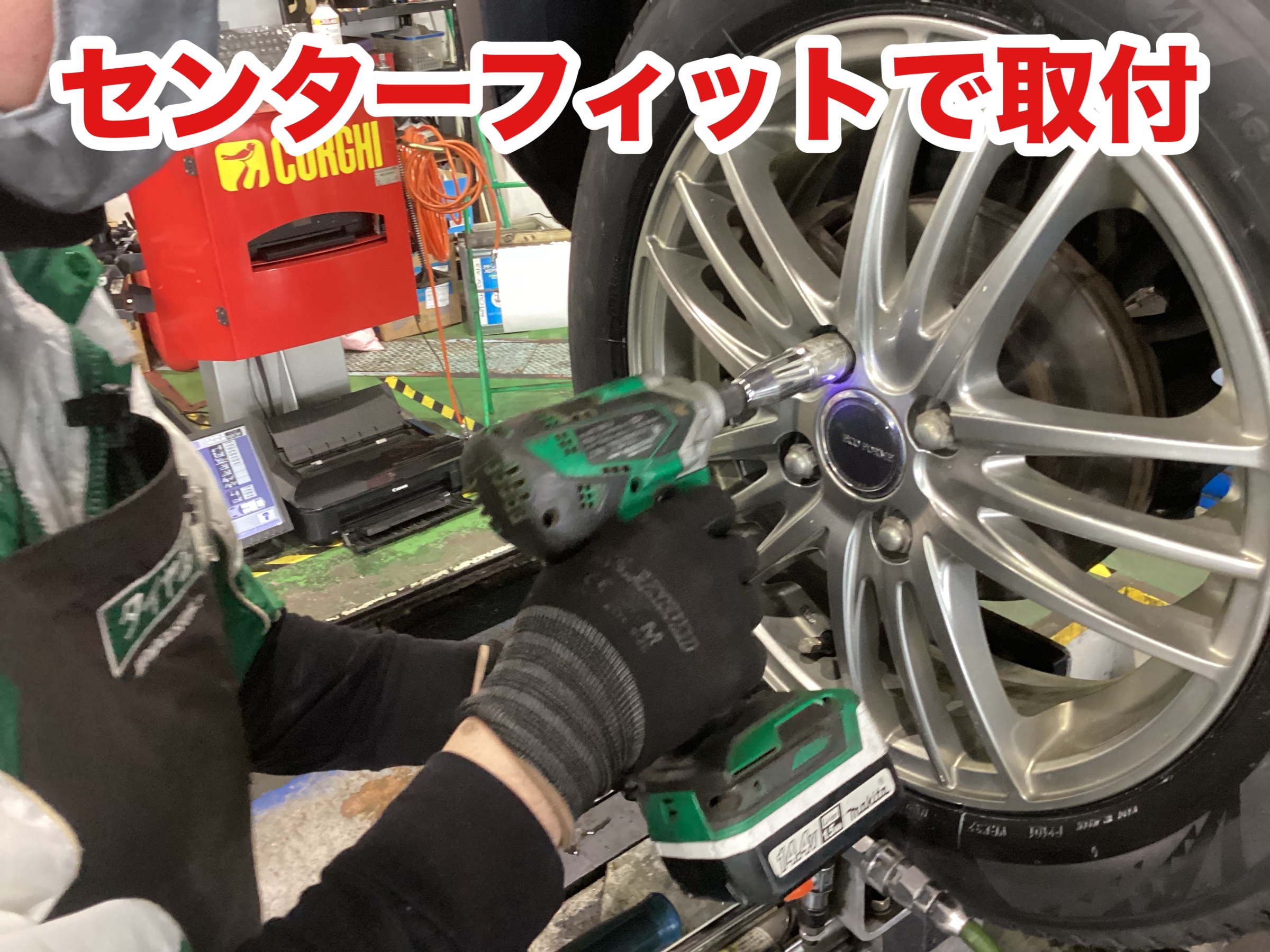 タイヤど真ん中取り付けのセンターフィットで止付けしていきます。