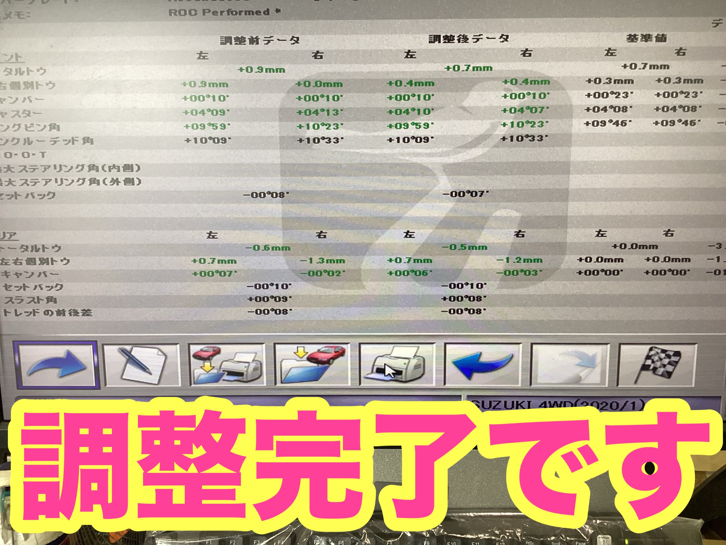 タイヤの方減りの原因になる場合がありますので、調整の後は試乗して確認します。