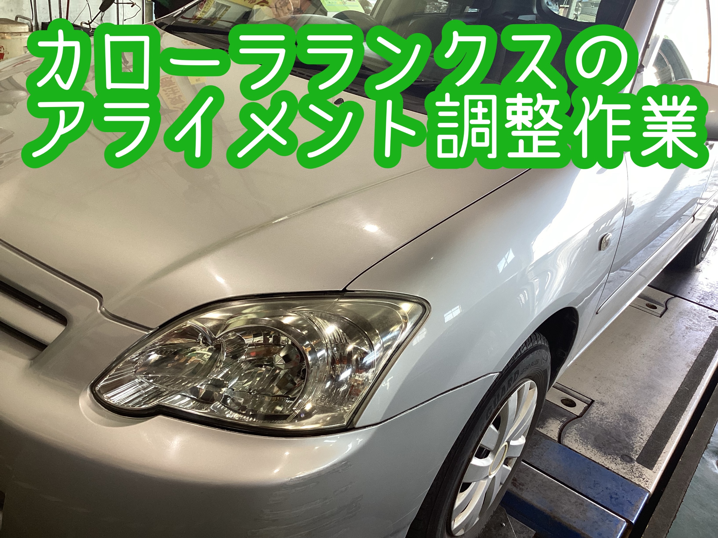 今日はトヨタ、カローラランクスのアライメント調整作業です