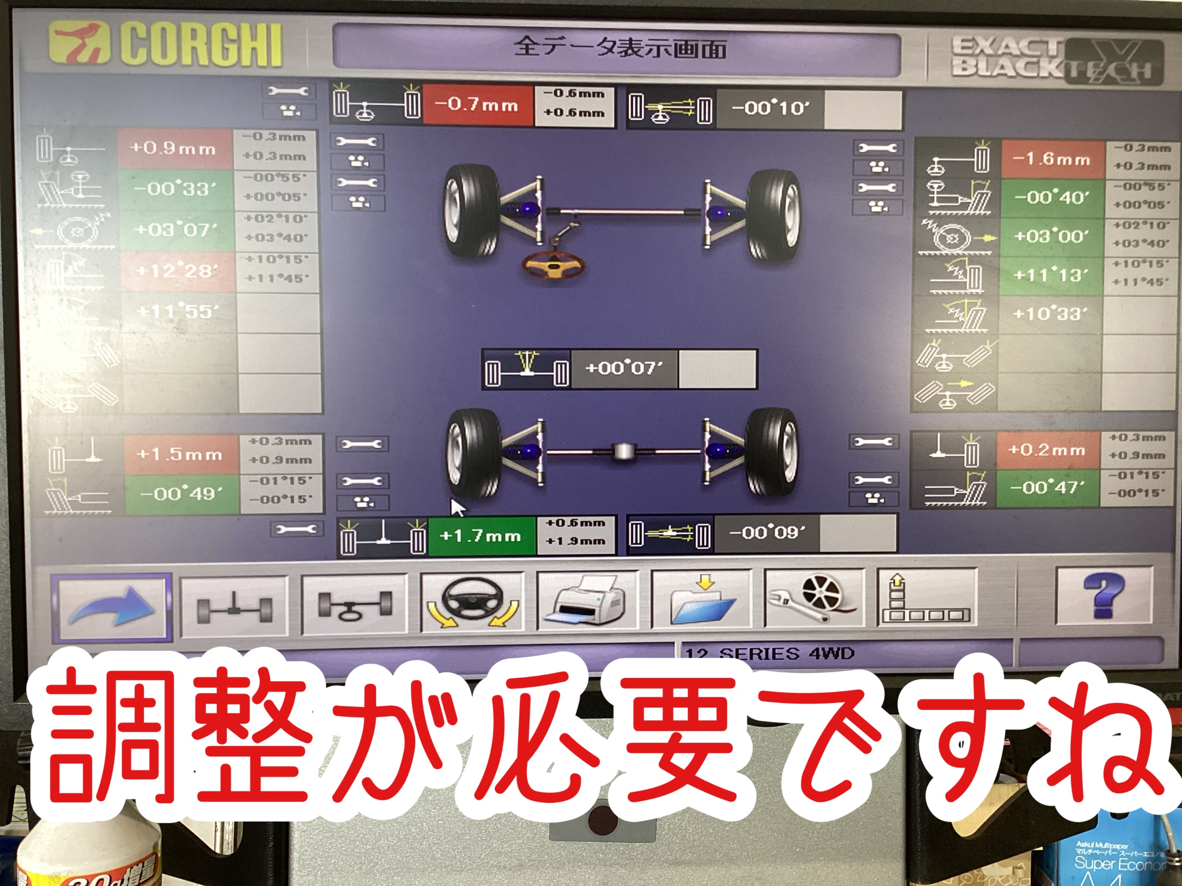 ですので、新車の時みたいに真っ直ぐ走りやすく調整します