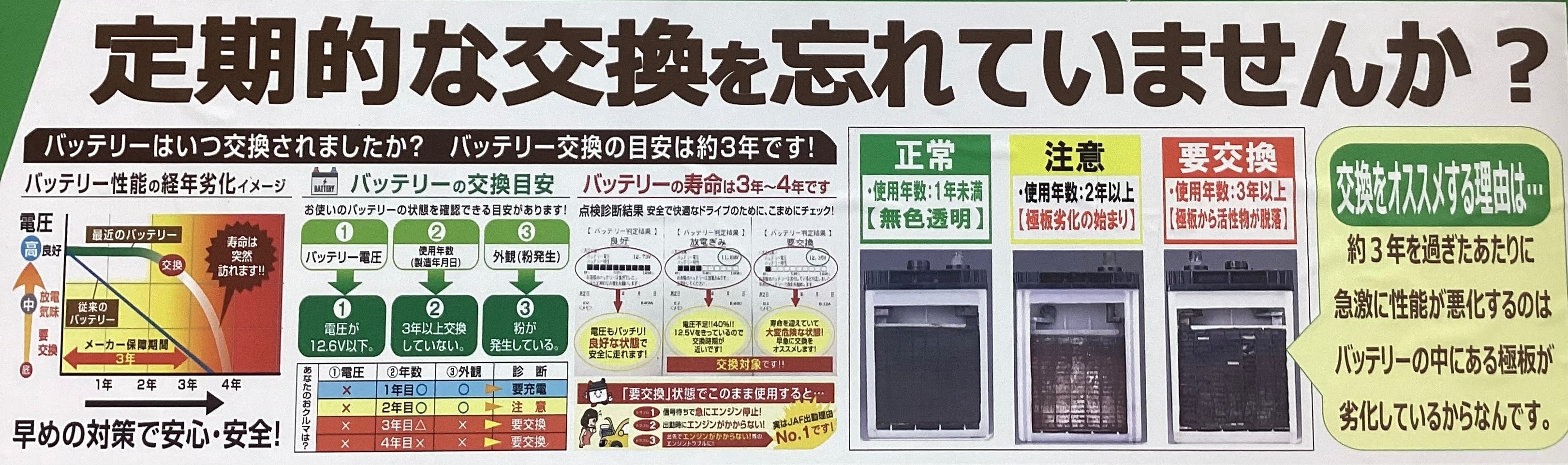 ご存知でしたか?バッテリーは約3年過ぎた位から交換時期がくるんです。
