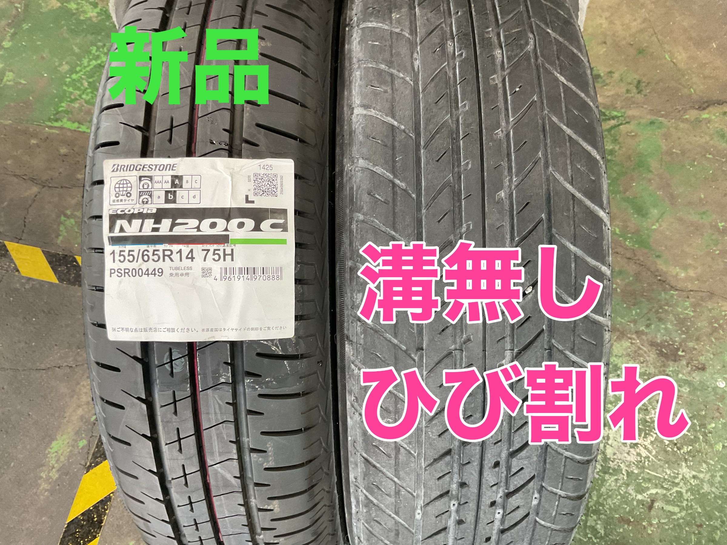 新品タイヤと比べたら溝の違いがよくわかると思います