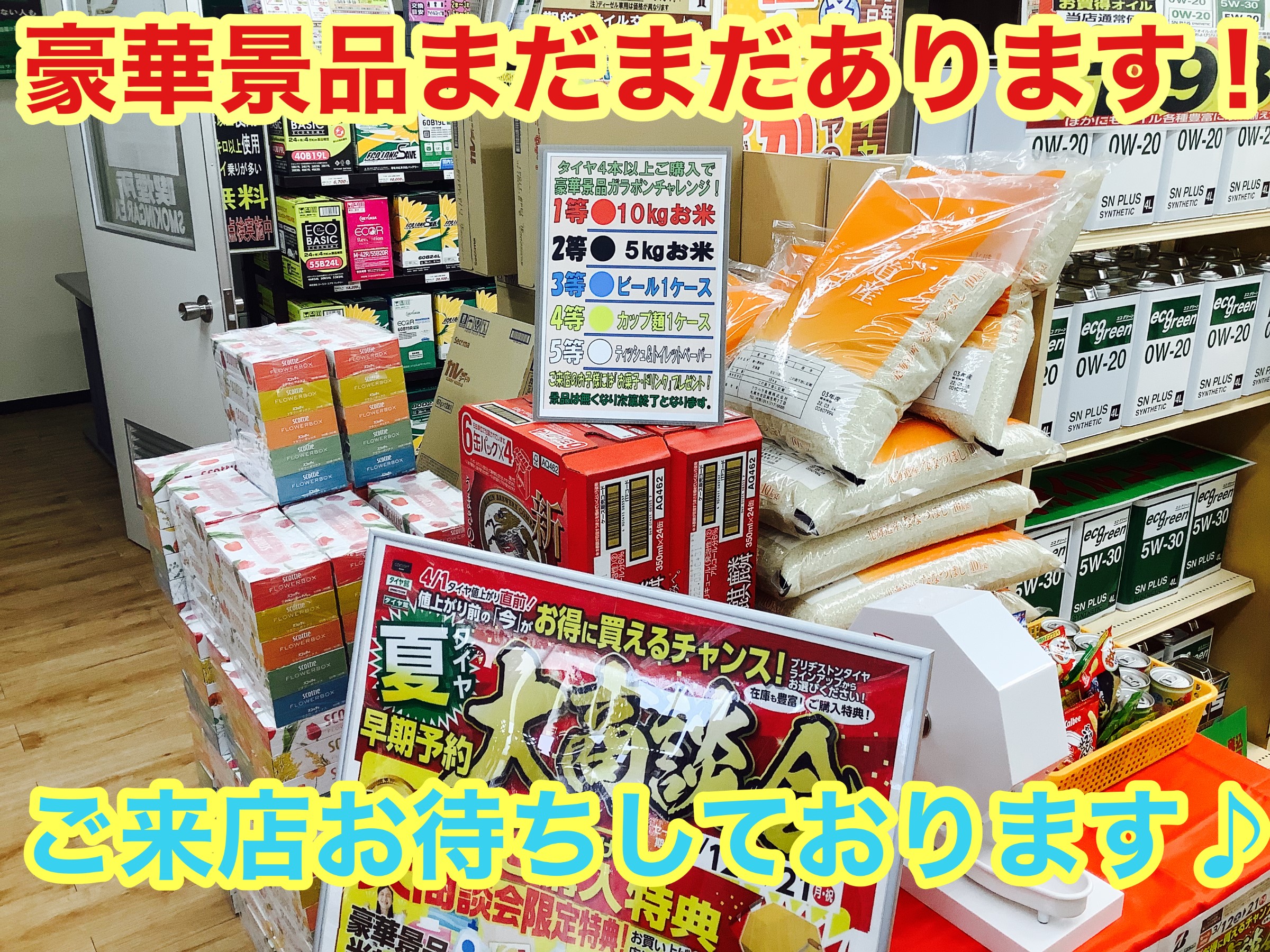 さらに、タイヤ4本以上ご購入で豪華景品ガラポンチャレンジも!